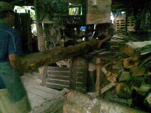 Pada proses selanjutnya, kayu log akan dibelah (gesekan) menjadi balok-balok atau papan-papan dengan ukuran sesuai rencana proses pembuatan palet.
